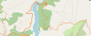 Około kilometr dalej teren nieco się wypłaszcza, szlak generalnie wiedzie ku północy. Dwoma obszernymi łukami przechodzimy przez żleby, po lewej mając widok na sztuczne jezioro i jego przeciwległy brzeg. Mniej więcej na wysokości widocznej z daleka zapory szlak odbija w lewo (13,2 km) w wąską górską ścieżkę wiodącą ostrymi zakosami. Gdy dochodzimy do asfaltowej drogi, kierujemy się drogą AS-14 w lewo (na południe, słupek kilometrowy "7") i łagodnym zejściem schodzimy do zapory (14,9 km).