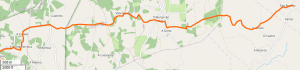 Na przedmieściach przechodzimy pod wiaduktem szosy N-540, w dalszym ciągu idziemy pod wzniesienie, generalnie odkrytym terenem. Gdy przecinamy kolejną szosę (znak stop, uwaga na znaczny ruch pojazdów) robi się mniej stromo, ale wypłaszczenie następuje na wysokości osady Santo Matias (5,4 km, przy krzyżówce zacieniony skwerek). Szlak prowadzi na południowy zachód gruntową ścieżką bezpośrednio przy powiatowej szosie LU-P-2901. Mijamy luźne zabudowania osady San Xoan do Alto, przechodzimy skrajem wsi Seoane (7,5 km). Osobna ścieżka się kończy, idziemy poboczem szosy, miejscami przyjemnie zacienionej. Przechodzimy przez osadę Carrigueiros (po prawej duże gospodarstwo/pałac?), kilkaset metrów dalej wchodzimy w zabudowania wsi O Burgo - w jej centrum po lewej automat z napojami, miejsce do odpoczynku (9,7 km).