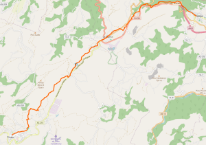 Wychodzimy z Salas przedłużeniem głównej ulicy, 150 m po minięciu zamku odbijamy lekko w prawo w skos. Na wyjściu z miasta Albergue Casa Sueño, z barem czynnym od rana. Gdy kończą się zabudowania wchodzimy do lasu, droga gruntowa, wygodna i dobrze oznakowana. Zaraz za miastem źródło Fuente de Pain. Teren łagodnie i jednostajnie się wznosi. Gdy tablice informują o możliwości zboczenia w prawo do wodospadu, jesteśmy mniej więcej w połowie podejścia. Po chwili szlak robi wyraźny zakos w lewo, od tego miejsca na przemian mamy ostrzejsze podejścia i wypłaszczenia. Wkrótce wychodzimy na asfaltową drogę, nią kierujemy się w prawo, po około 1 km płaskiego terenu odbijamy w lewo, ponownie w leśną drogę, znowu okresami ostrzejsze podejścia. Przez pewien czas idziemy wzdłuż głównej szosy, której nie widzimy, za to zapewne słyszymy. Dochodzimy do zabudowań wsi Porciles (5,4 km, możliwość odbicia w prawo do Posada de peregrinos Fontenonaya).